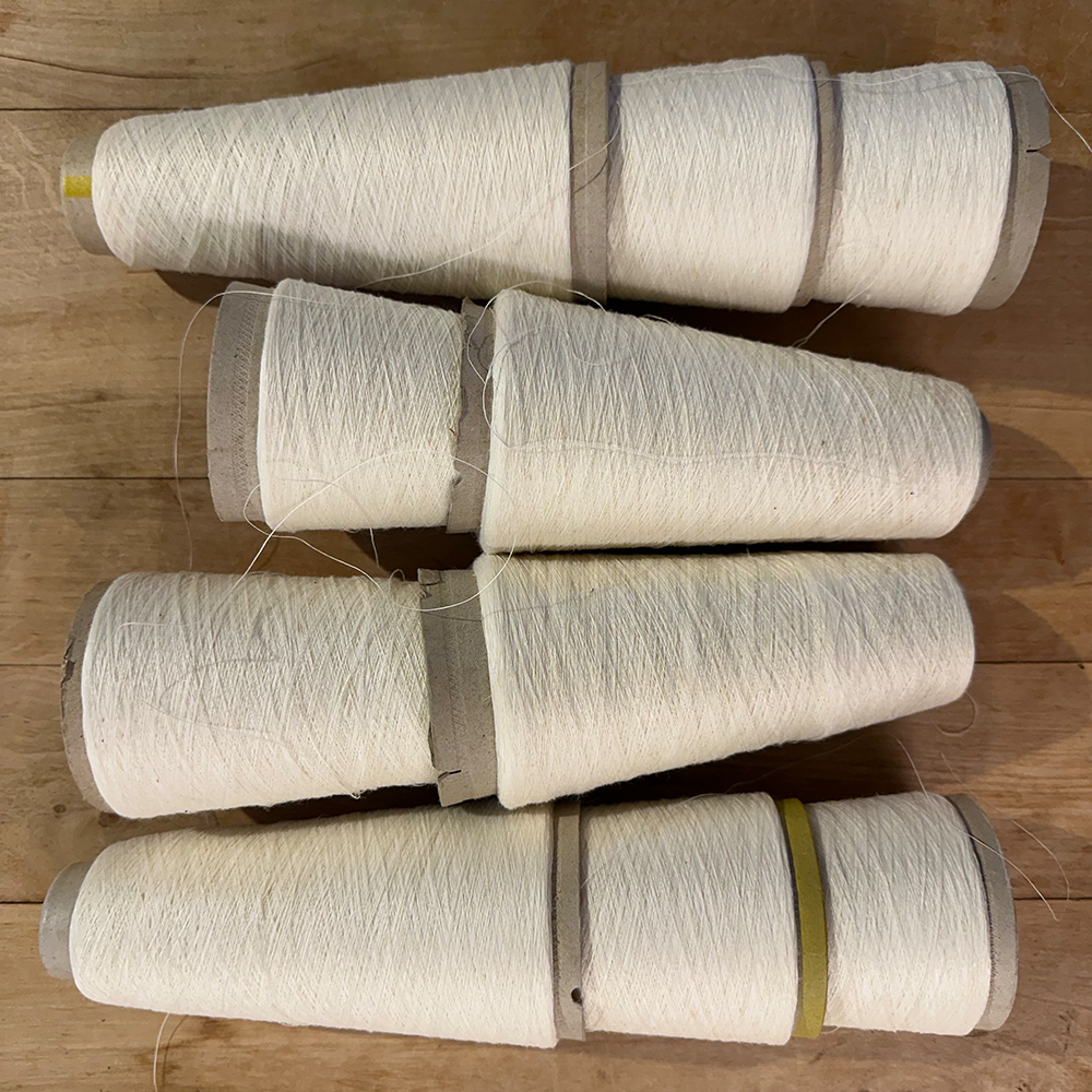 Wir müssen uns leider von einigen Garnpartien trennen, die noch aus Beständen der Holstein Flachs stammen. Meist ist die Menge zu groß um sie innerhalb eines überschaubaren Zeitraumes umgespult auf Holzspulen zu verkaufen und doch zu klein, um die Garne in Maschinen gewebten Stoffen zu verarbeiten.