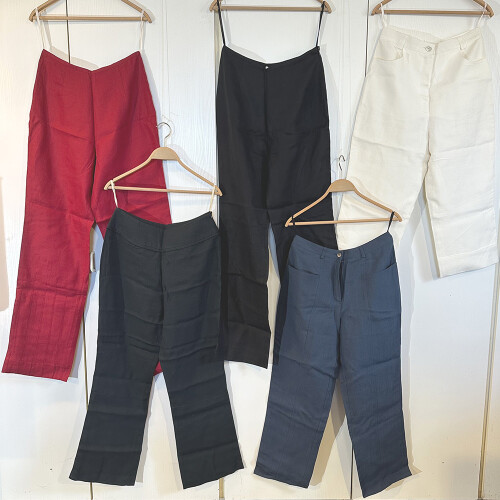 Sie erhalten genau die abgebildeten (ungetragenen) Bekleidungsstücke aus der Produktion der ehemaligen Holstein Flachs, der ersten Damenkollektion “Linowoman” komplett aus Bio-Leinen und ausschließlich in Deutschland hergestellt. Soweit aus Reinleinen handelt es sich bei den verwendeten Stoffen um solche aus kontrolliert biologisch angebautem Flachs (kbA).
