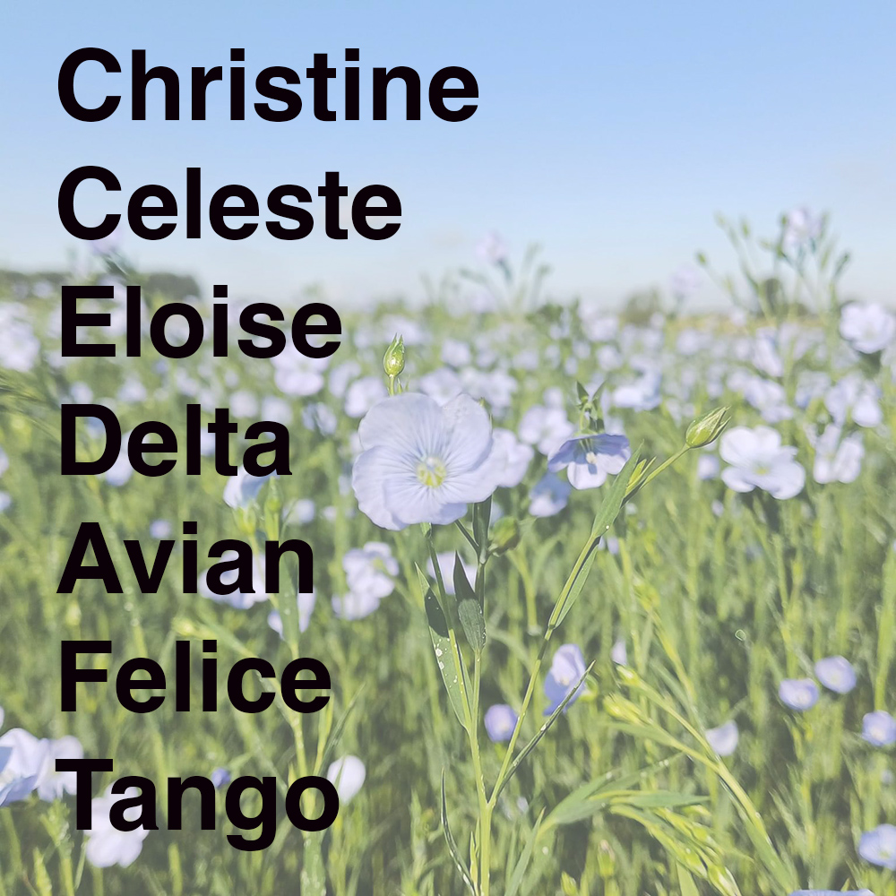 Sie erhalten 7 Packungen mit je 50 g gesunden, ungebeizten Saatguts mit einem Tausendkorngewicht von etwa 6,5 g der blau blühenden Faserleinsorten Felcice, Avian, Christine, Tango und Celeste, Eloise und Delta